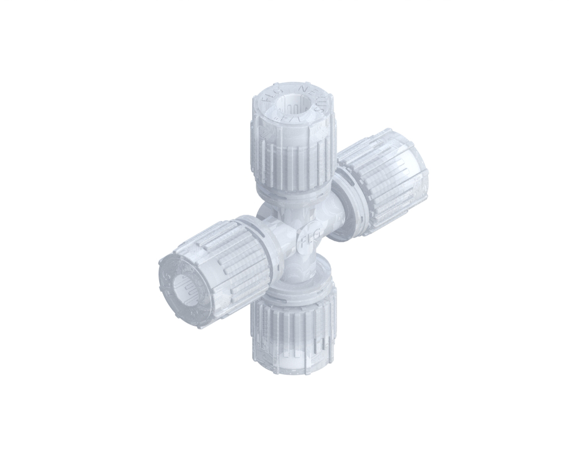 UNION CROSS, 1/4″ MALE X 1/4″ MALE X 1/4″ MALE X 1/4″ MALE, PFA