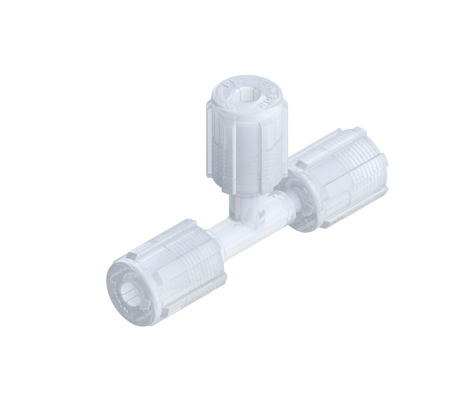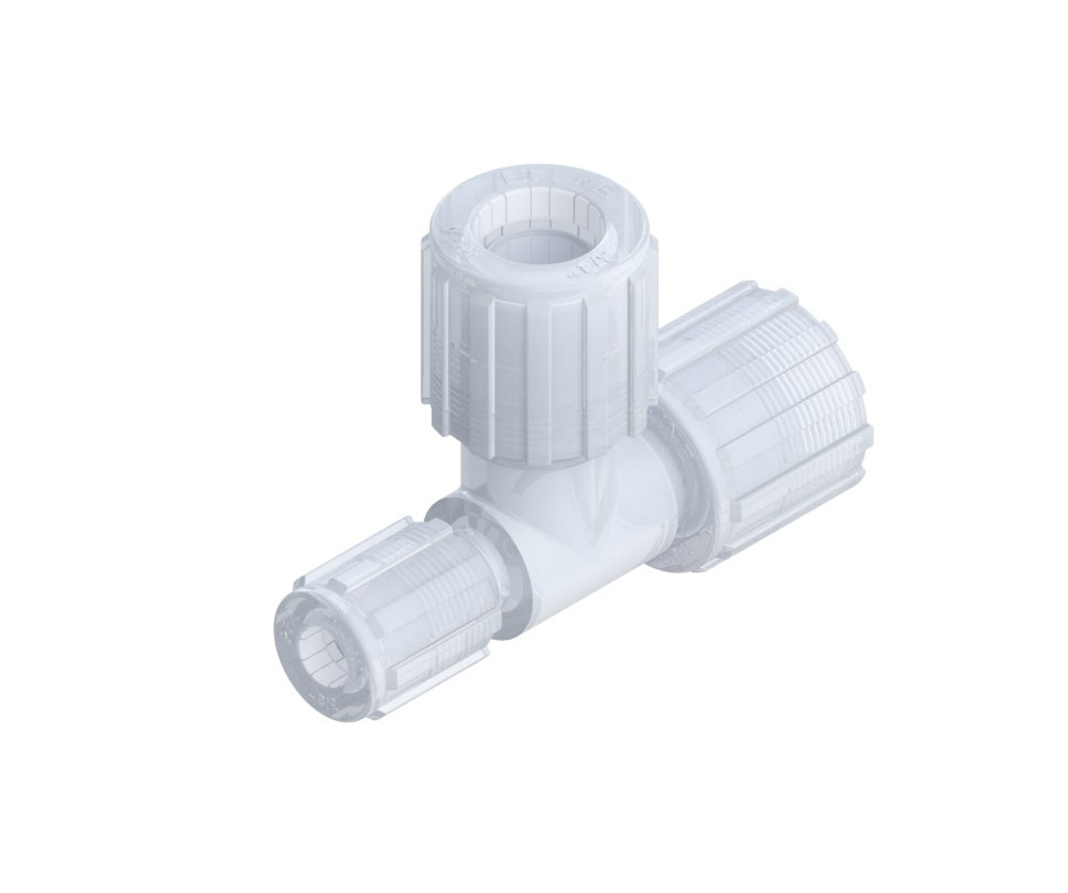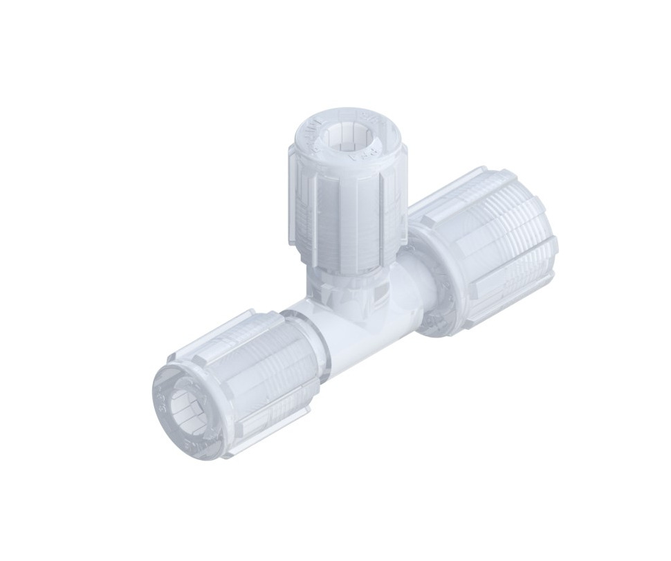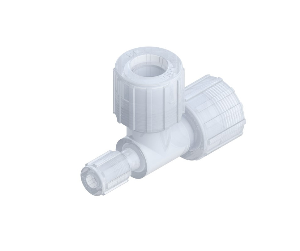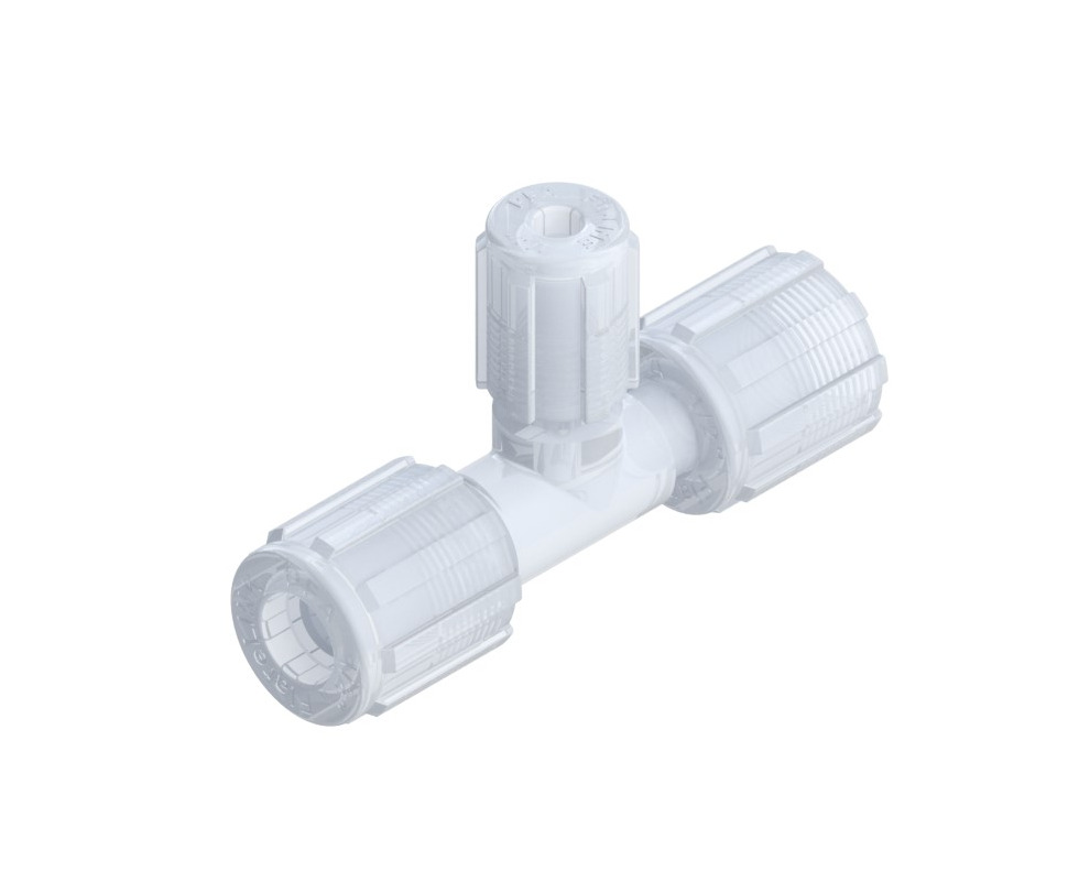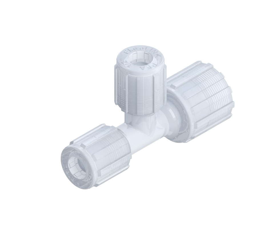 UNION TEE RUN, 1/4″ F X 1/4″ F X 1/4″ TF W/ PFA NUTS