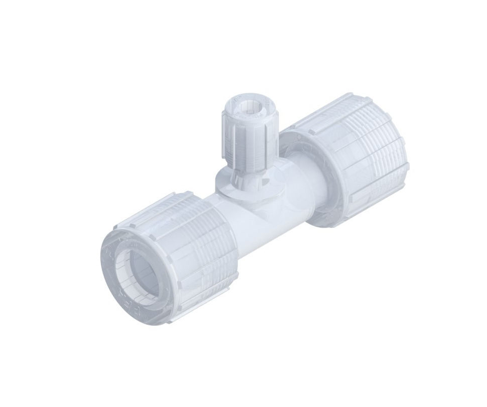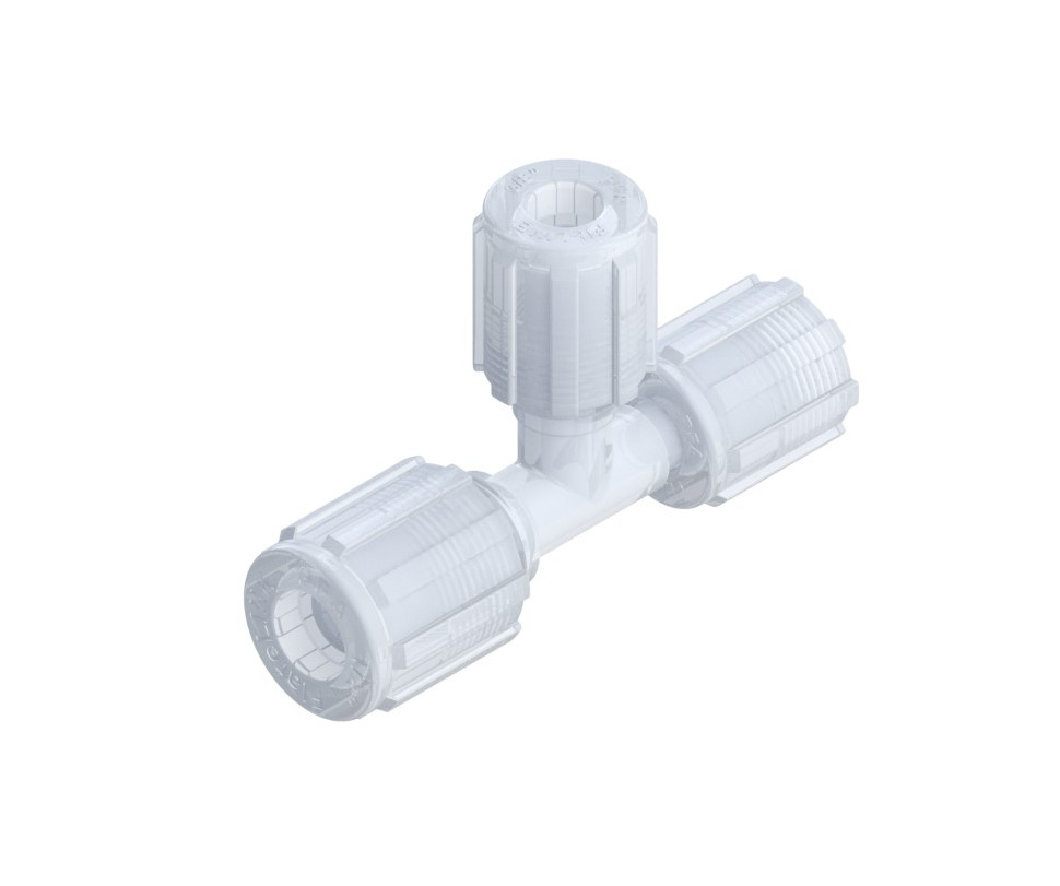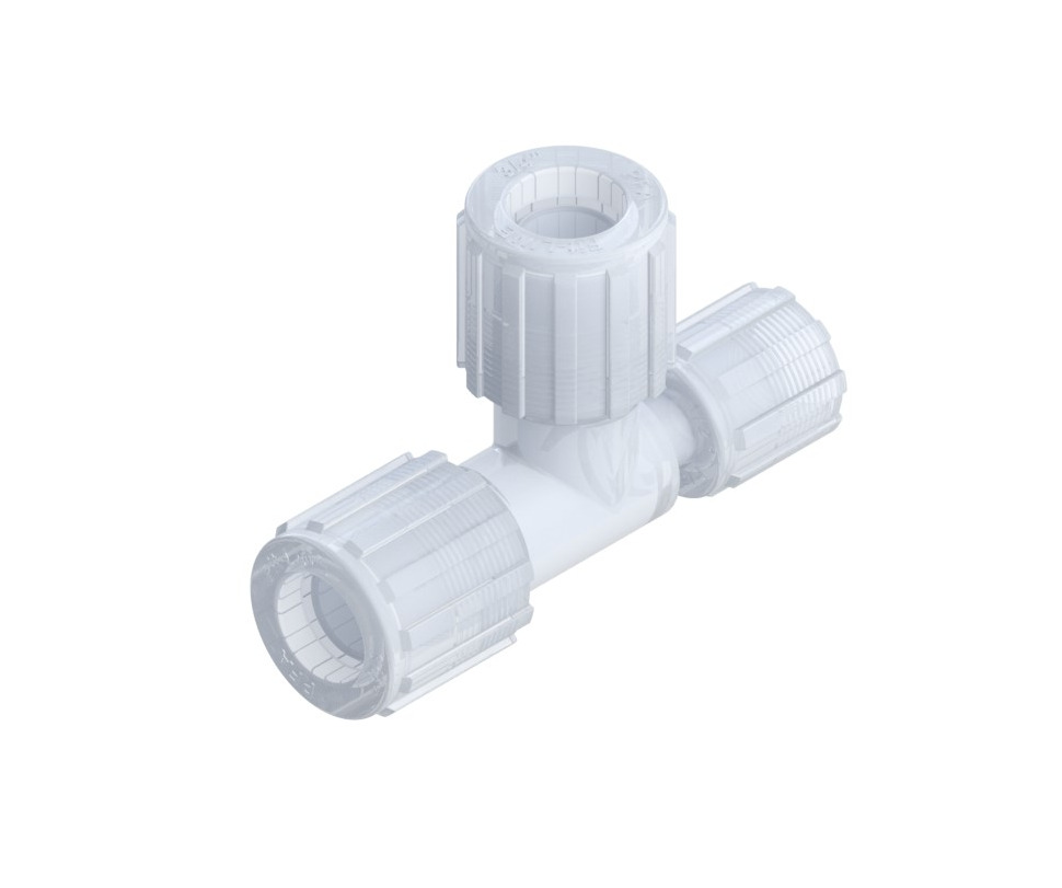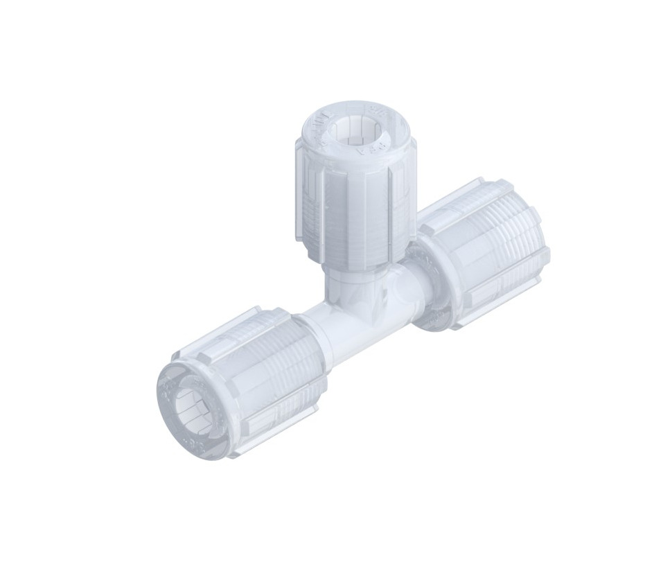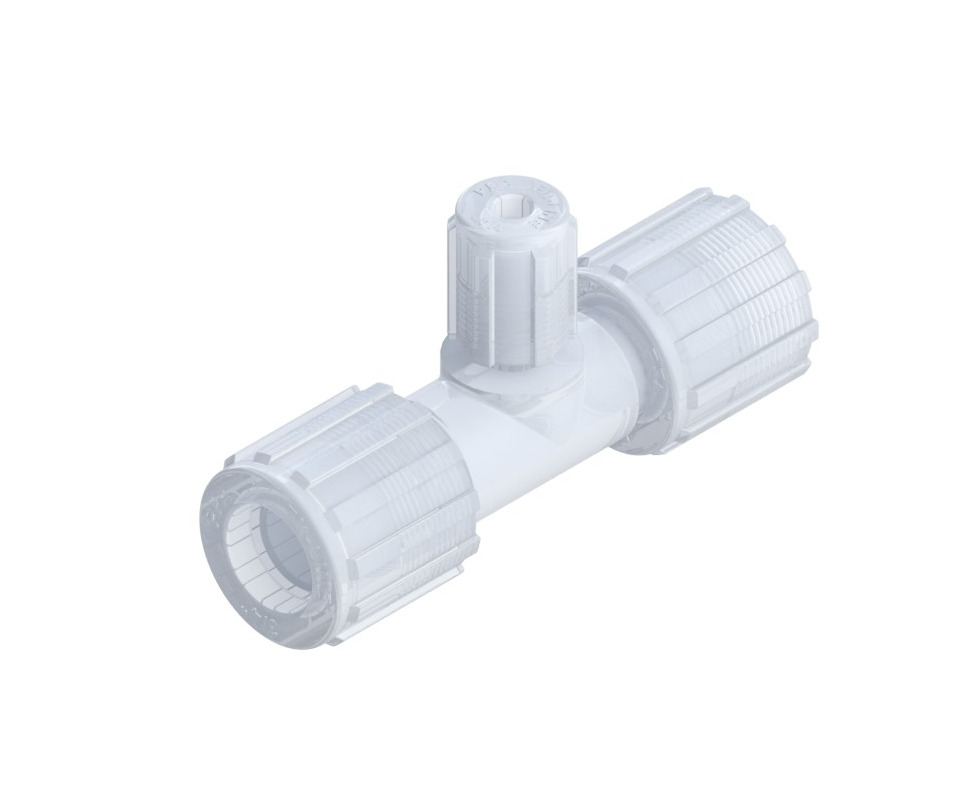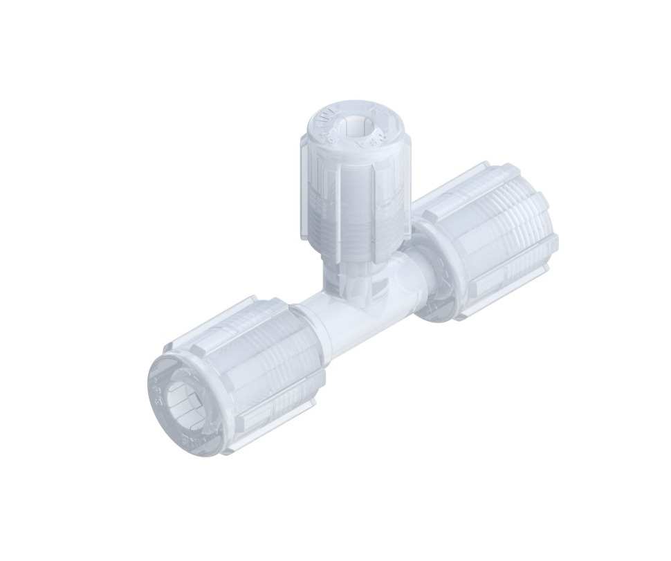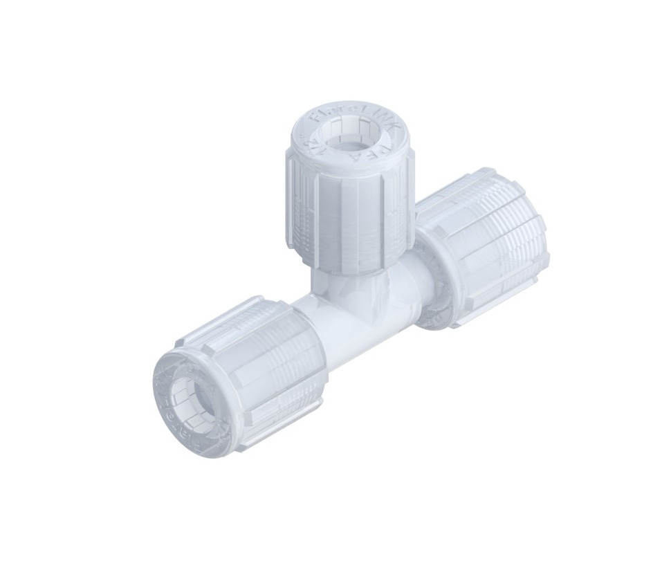 UNION TEE RUN, 1/4″ F X 1/4″ F X 1/4″ TF W/ PFA NUTS