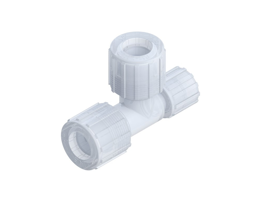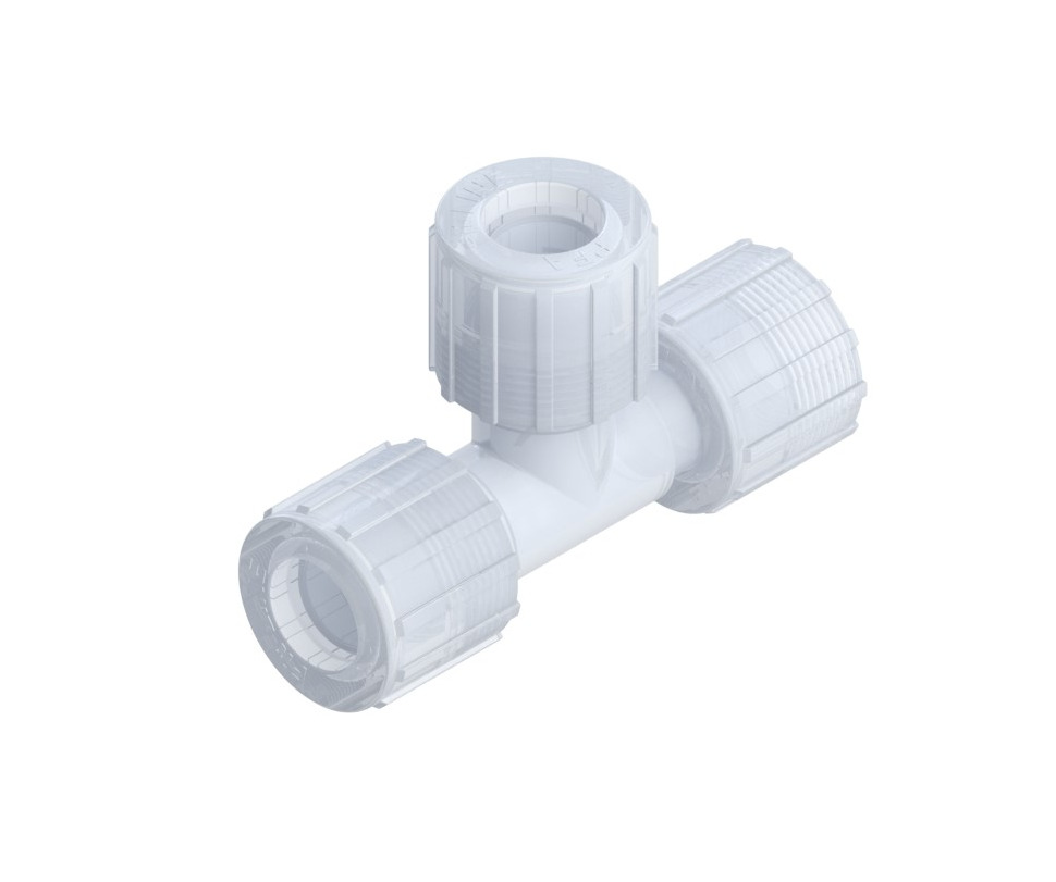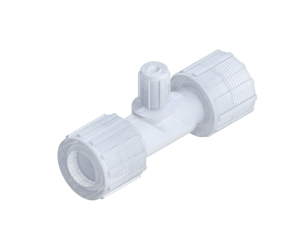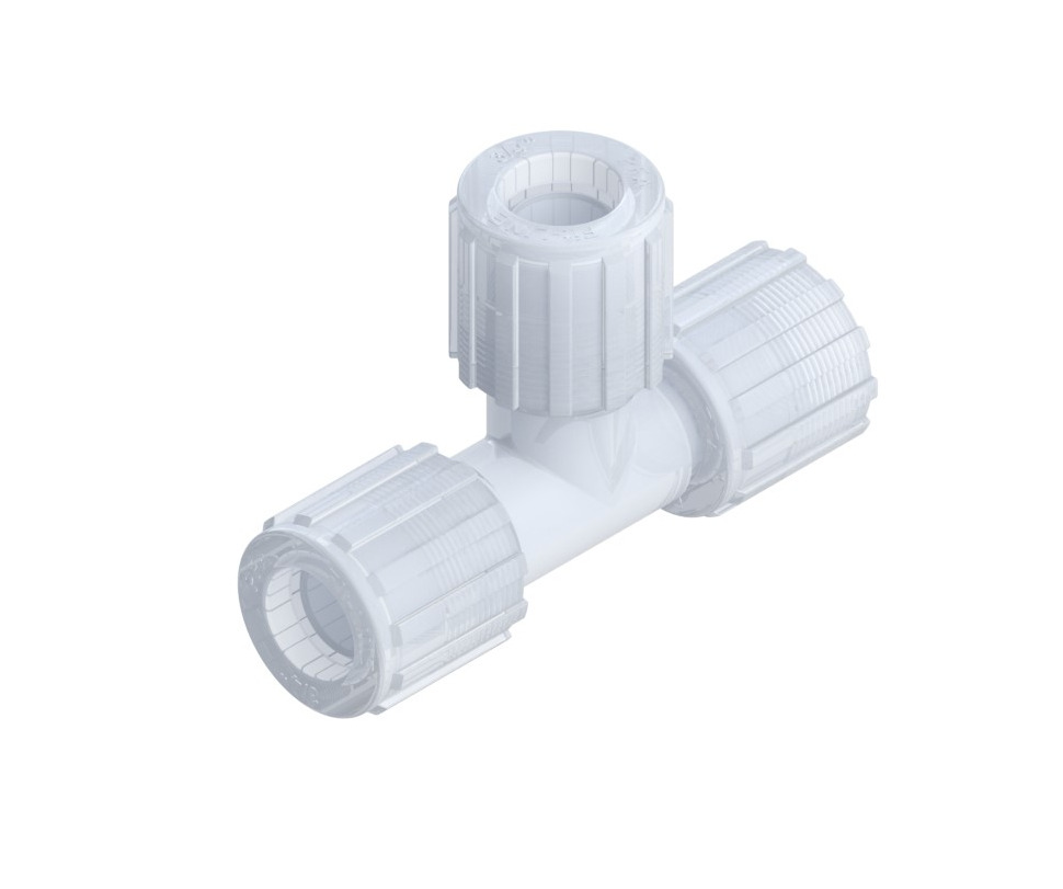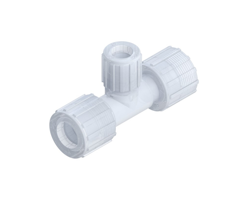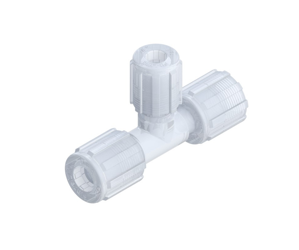 UNION TEE RUN, 1/4″ F X 1/4″ F X 1/4″ TF W/ PFA NUTS