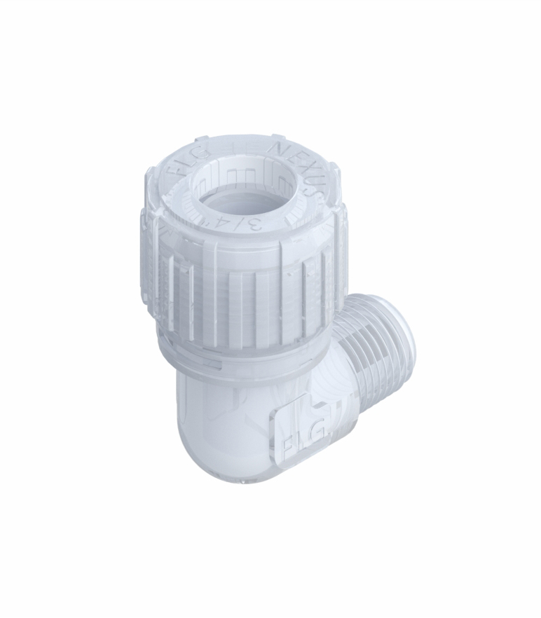 | NXG-ME12-12N-3 | MALE ELBOW, 3/4" MALE X 3/4" MNPT, PFA | 3/4" Male Insert | 3/4" MNPT | N/A | N/A | 0.63 | PFA | PFA | |