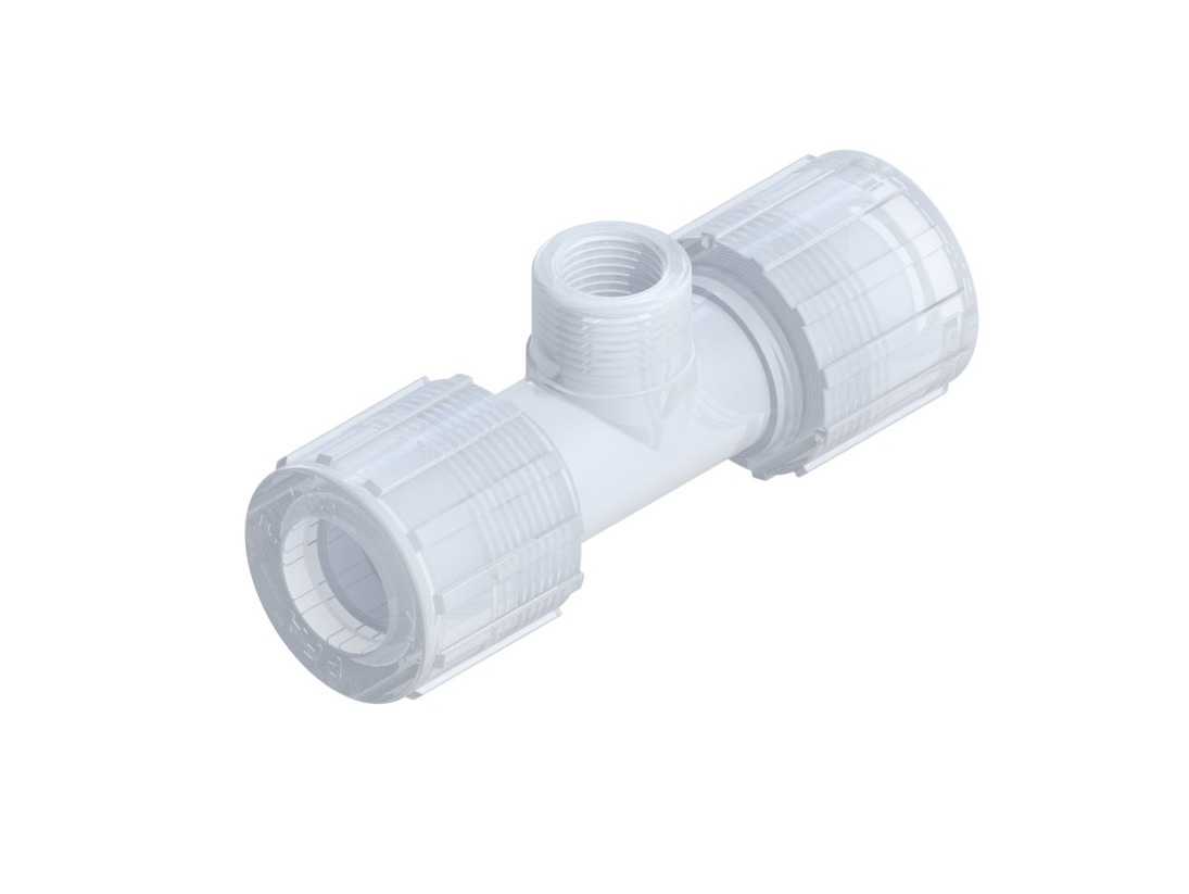 FEMALE BRANCH TEE, 1″ F X 1/2″ FNPT X 1″ F W/ PFA NUTS