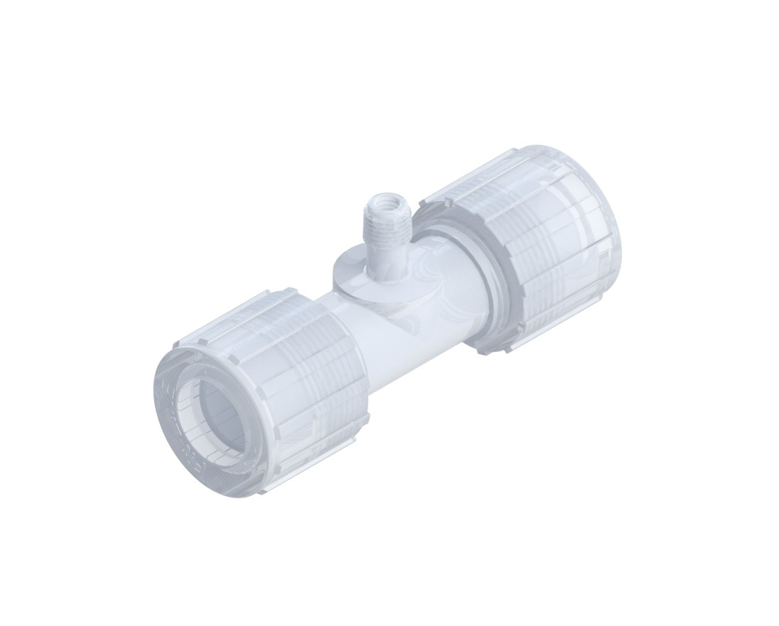 MALE BRANCH TEE, 1″ F X 1/4″ MNPT X 1″ F W/ PFA NUTS