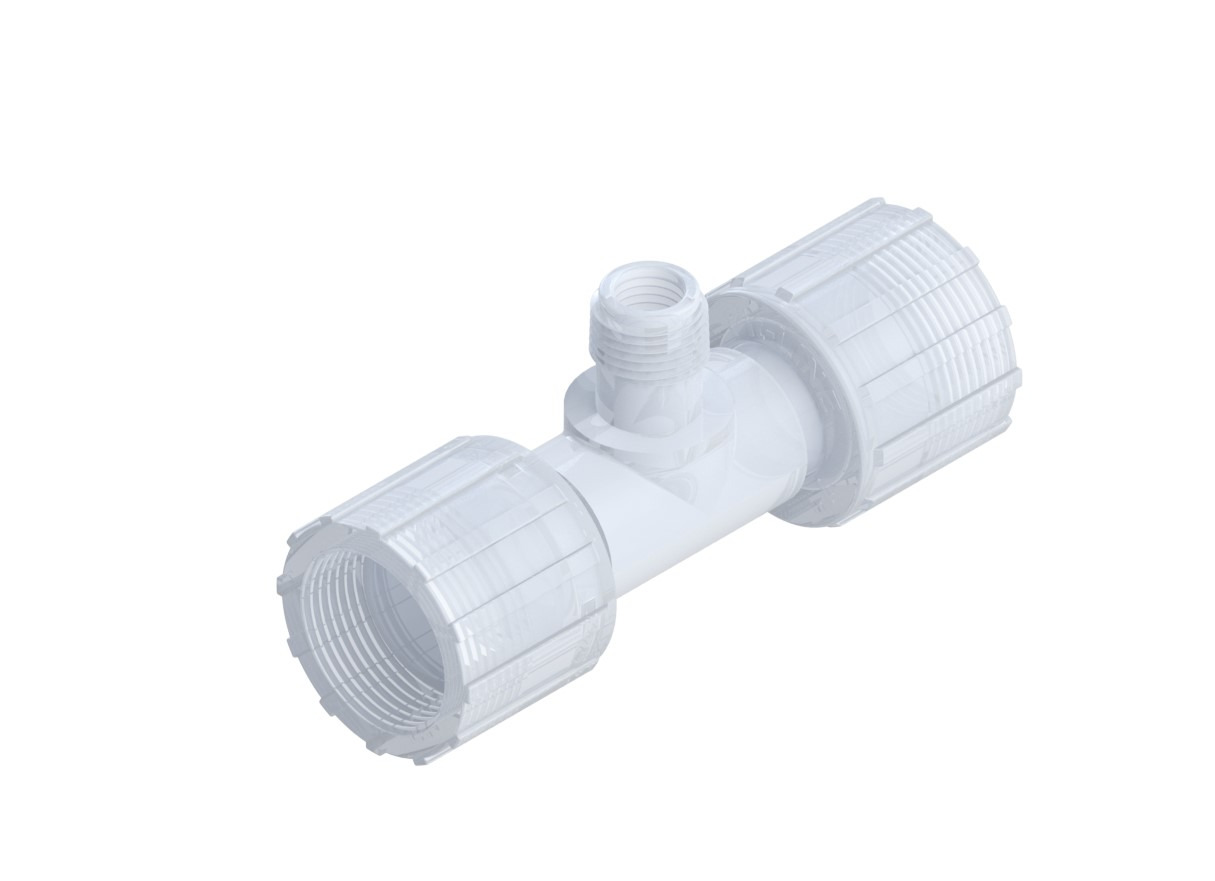 MALE BRANCH TEE, 1″ TF X 1/2″ MNPT X 1″ TF W/ PFA NUTS