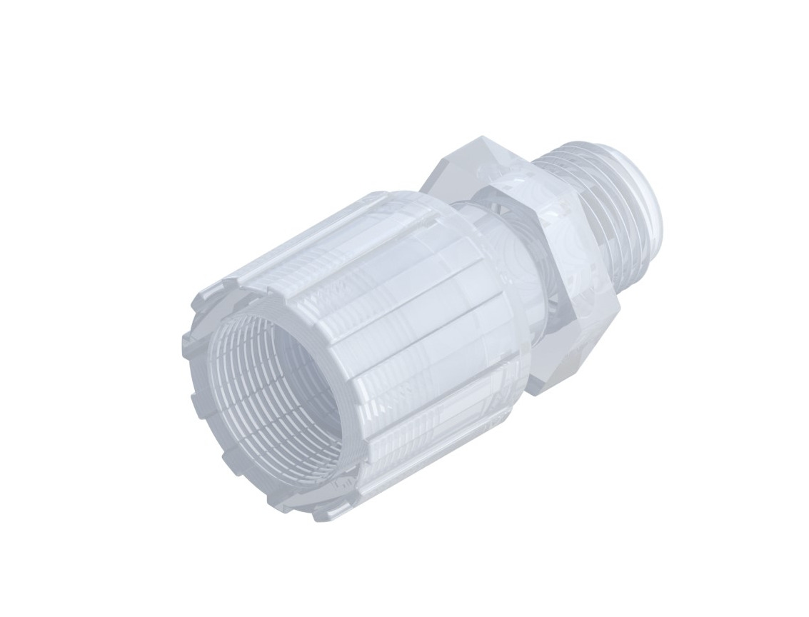 MALE CONNECTOR, 3/4″ TF X 1/2″ MNPT W/ PFA NUT