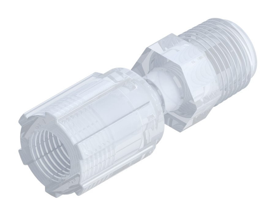 MALE CONNECTOR, 1/4″ TF X 3/8″ MNPT W/ PFA NUT