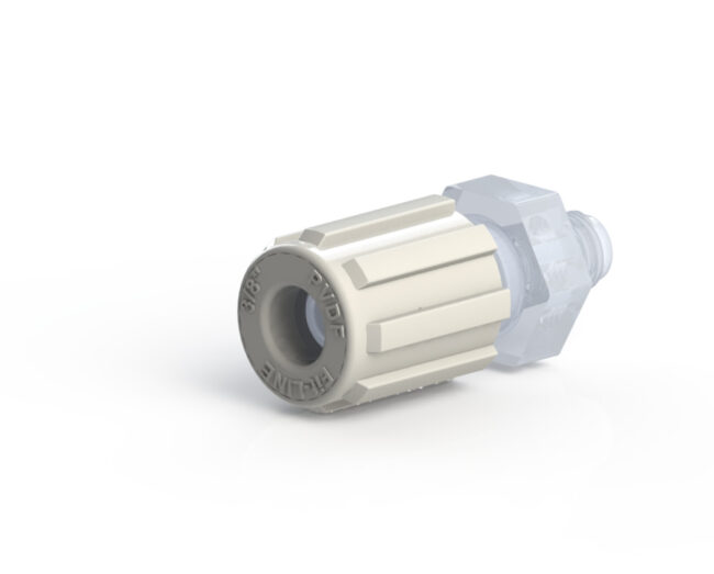 MALE CONNECTOR, 3/8″ F X 1/8″ MNPT W/ PFA NUT