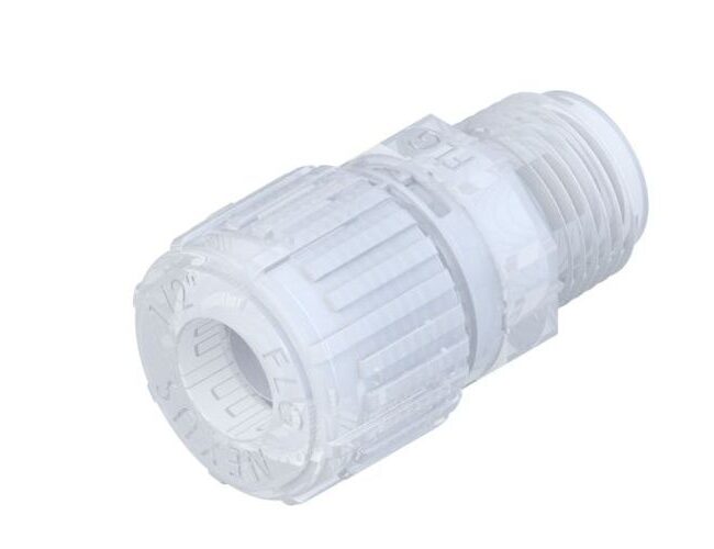 MALE CONNECTOR, 1/2″ MALE X 3/4″ MNPT, PFA
