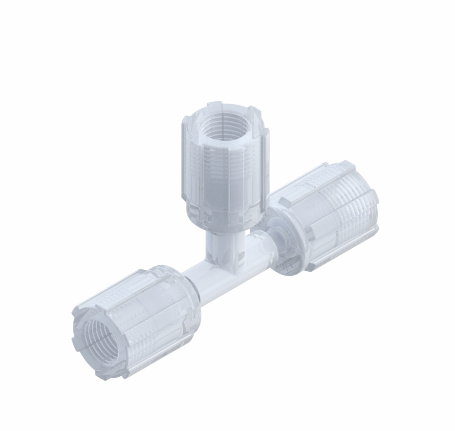 UNION TEE, 1/4″ TF X 1/4″ TF X 1/4″ TF W/ PFA NUTS