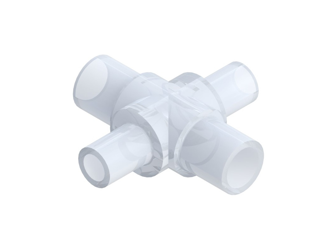 WELD CROSS REDUCER, 1/2″ TS X 3/8″ TS X 1/2″ TS X 3/8″ TS PFA BODY ONLY